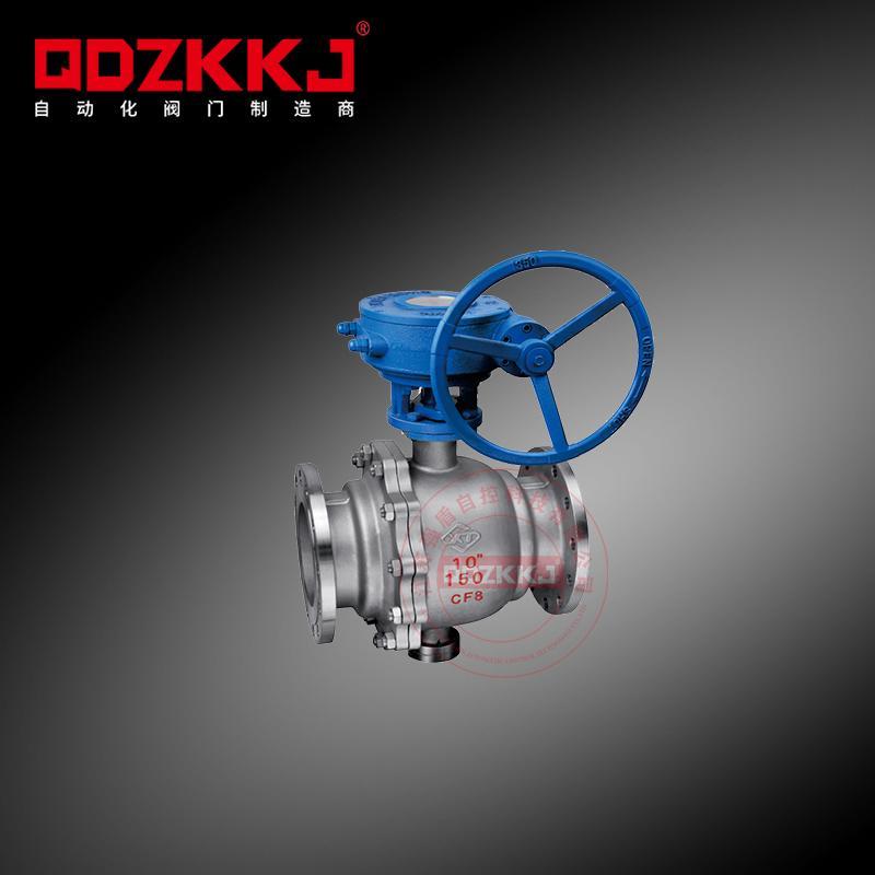 固定球閥有兩個和三個閥體結構。中法蘭采用螺栓連接,加強聚四氟乙烯鑲嵌在不銹鋼圈中。鋼圈后部設有彈簧,確保閥座靠近球體并保持密封。上下閥桿均配有PTFE軸承,減少摩擦,節省操作精力,小軸底部設調片,保證球與密封圈的接頭位置。全直徑:閥門流量孔徑與管道內徑一致,便于管線清洗。
